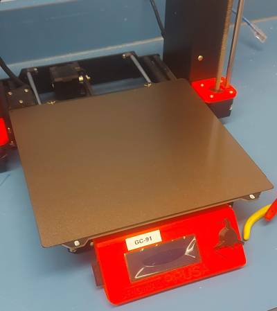 Always use the textured sheet with PETG. PETG sticks to the smooth Prusa sheet and can rip off the special PEI plastic coating. The textured sheet can be used safely with PETG. Please read more about the textured sheet here. We have a third party (not Prusa brand) textured sheet but the information is the same. Use the gold side (the textured side) of the sheet. When not in use please return the textured sheet to the bin with the PETG filament.